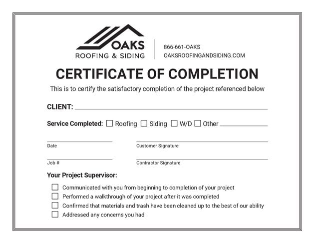 Certificate of Completion